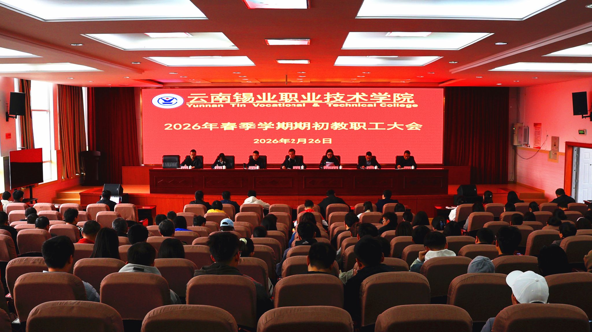 2月26日,学院召开2026年春季学期期初教职工大会,总结寒假工作,部署春季学期和全年重点工作任务,凝聚共识、提振士气,为新学期各项工作有序开展奠定坚实基础。学院党委副书记、院长李蕾主持会议并作讲话。李蕾通报了寒假工作成效。指出假期期间,学院聚焦工匠培育,推进云锡工匠学院建设,深化技术国际输出、拓展对外交流,实现培训收入31万元;扎实做好教学筹备、学生实习等工作,精心谋篇布局,确保新学期教育教学平稳有序;完成机构优化调整和人员竞聘,...