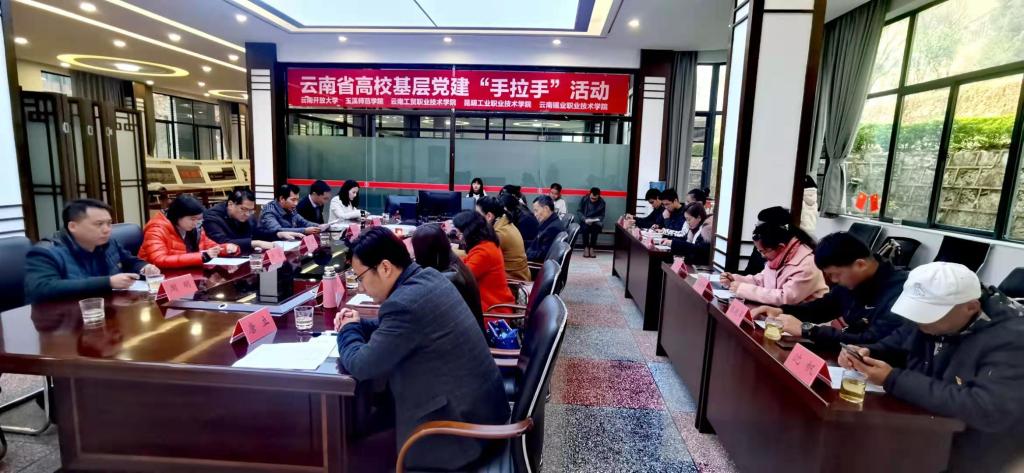 12月4日,云南开放大学党委、云南工贸职业技术学院党委、昆明工业职业技术学院党委、bat365官方网站党委在玉溪师范学院联合开展了党建工作“手拉手”结对共建活动,进一步探索创新党建工作,全面开展基层党组织结对共建活动,着力构建优势互补、互联共建的基层党建工作新格局。