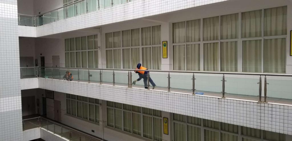 学院坚持“全覆盖、无死角、全清洁、彻整治”的原则,对校园进行全方位大扫除和消毒。从教学楼到食堂,从学校草坪到绿化带,从楼梯护栏到学校运动场,学院后勤人员不怕脏、不怕累,拿起清洁工具认真劳动,清除杂草、清理垃圾、擦拭护栏、消毒消杀,不放过校园的任何一个卫生死角。