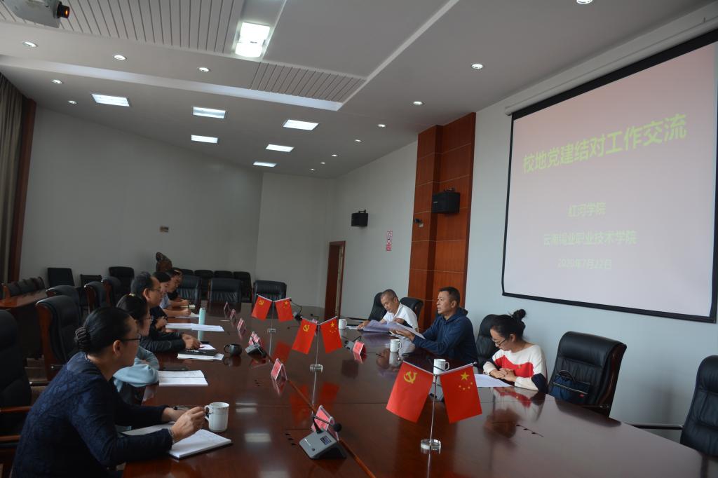 为深入贯彻落实党的十九大提出的“打造共建共治共享社会治理格局”战略部署,进一步丰富党建形式,搭建党建平台,共同提升党建工作水平,以高质量党建推动学校高质量发展。7月22日,红河学院党委副书记邹进一行深入云锡职院,就推进红河州委关于进一步明确州内高校党建工作责任的部署进行磋商交流。云锡职院党委书记张鹏、党委副书记刘青参加了交流会谈。