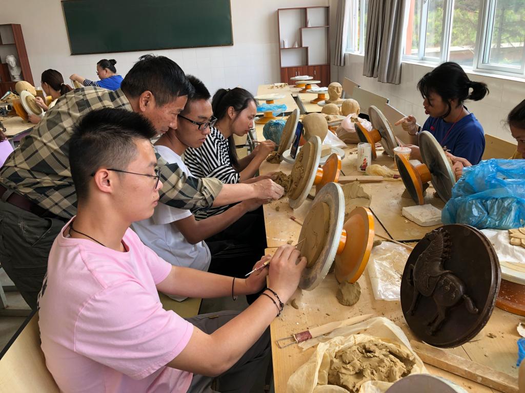 为提高大学生锡工艺技能水平,提升大学生的艺术修养,5月30日至5月31日,职业技术学院锡工艺美术学院特邀工艺美术大师、雕塑家钱曼辉老师学院在雕塑工作室为工艺美术品设计专业学生进行了高浮雕与浅浮雕内容的专题教学。