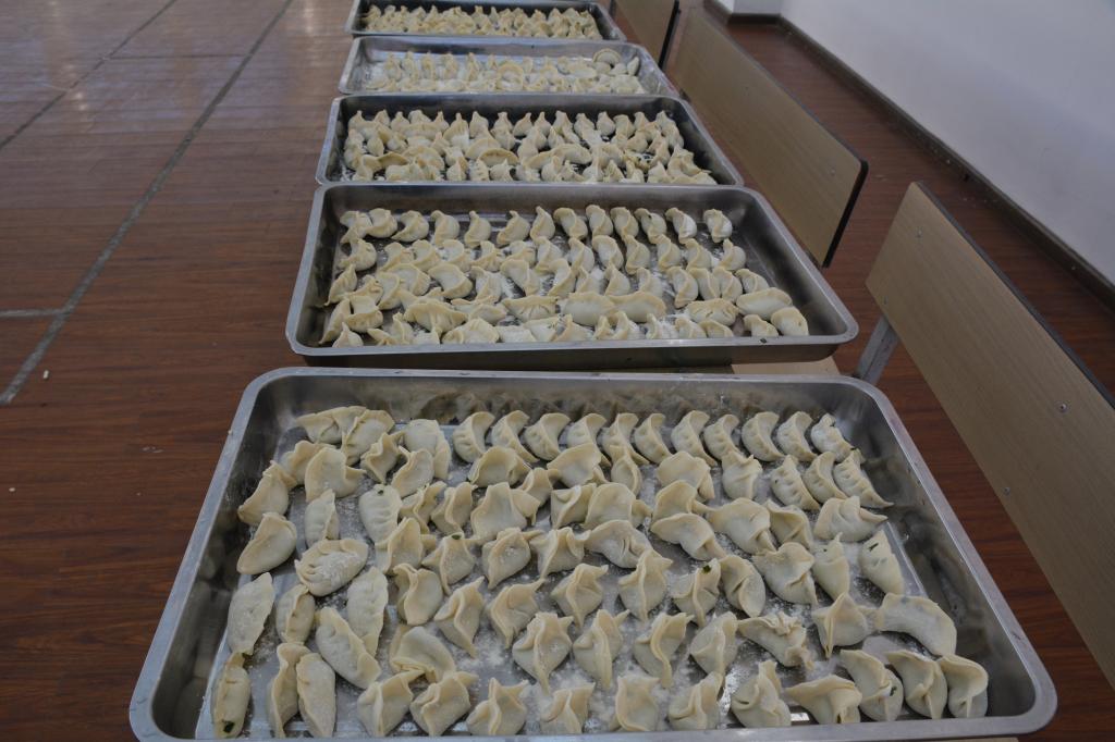 教师们平时是教学岗位上的行家里手,包起饺子来更是出手不凡。大家分工合作,有的捏,有的包,有的教,有的说,有的笑,彼此相互切磋技艺,包的水饺是有模有样,千姿百态。现场呈现出了一片和谐温馨、暖意沁人心脾的祥和景象。