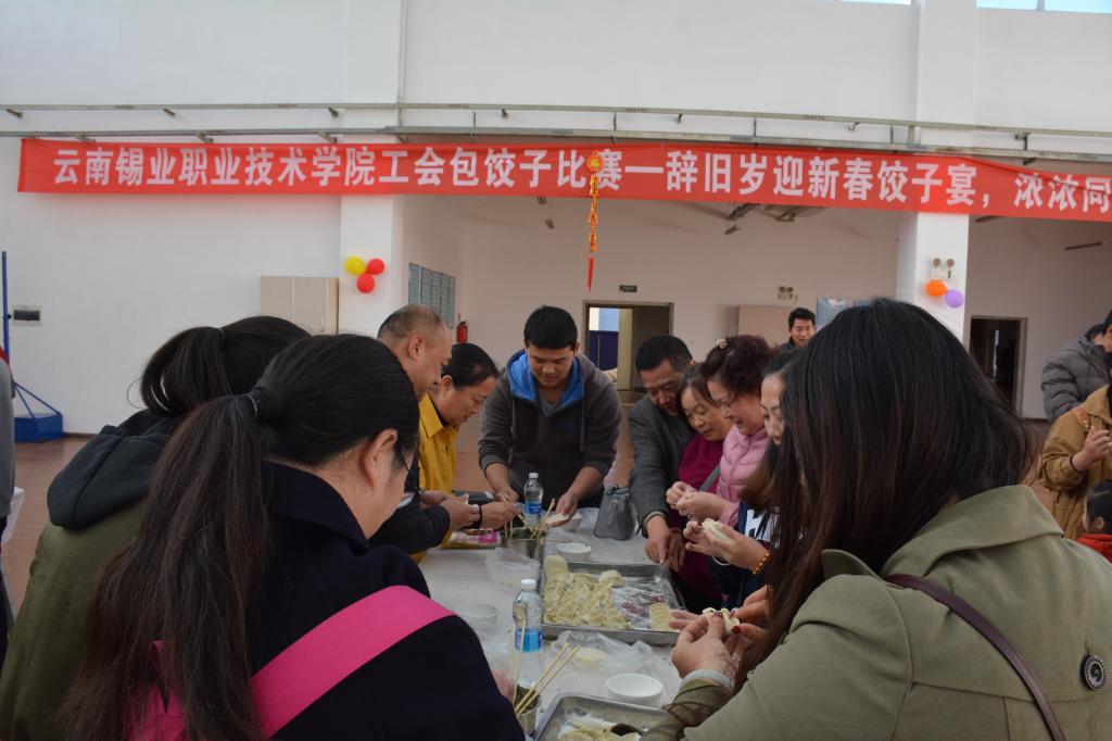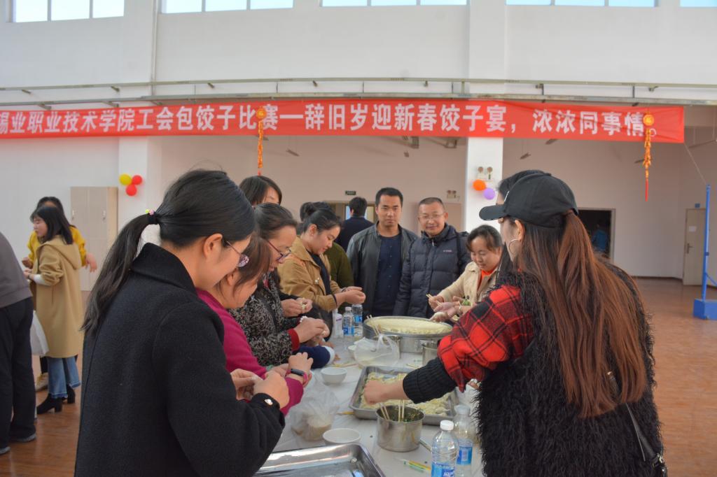在2019年元旦来临之际,为进一步活跃学院教职工的业余生活,增强了教职工的凝聚力,12月27日下午,职业学院工会组织全院教职工在学生服务中心四楼举行了“包饺子比赛”活动。包饺子活动已成为职业学院“庆元旦迎新春”传统活动,至今已举办了四年。今年的包饺子活动主题是“辞旧岁迎新春饺子宴,浓浓同事情”。