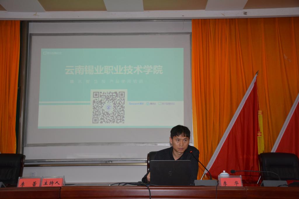 腾讯公司云南项目组李华工程师对“腾讯智慧校园”中的班级管理、财务助手、行政助手、考勤及审批、教育教学服务、校友会、校园云卡、精品云课、企业小助手、瑞格心理教育信息化管理系统、素质评价、微官网、课表及选课报名、迎新生、院长信箱、状态数据平台等24项内容80多项功能的使用方法和技巧进行了详细的阐释,并就信息平台使用过程中可能出现的问题与在场的教师进行了深入交流,认真详细的解答了教师们提出的问题。