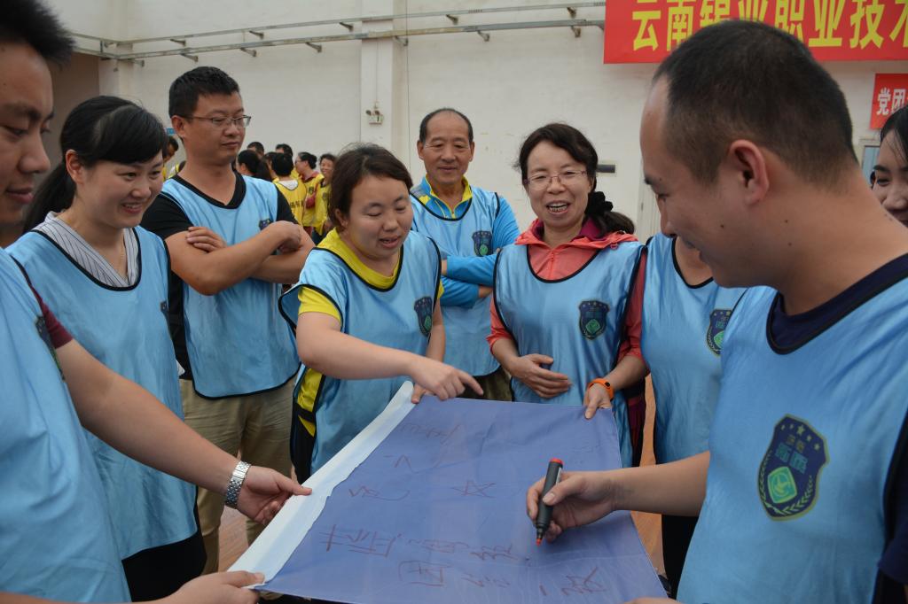 在“中秋国庆”来临之际,为深入推进庆祝教师节活动,进一步调节教职工身心健康,增强教师队伍的团队凝聚力和执行力,提高教师之间的协作精神和集体主义精神,营造和谐幸福校园,9月21日下午,学院委托红河西典拓展培训基地组织全体教职工在大学生活动中心四楼进行拓展训练。