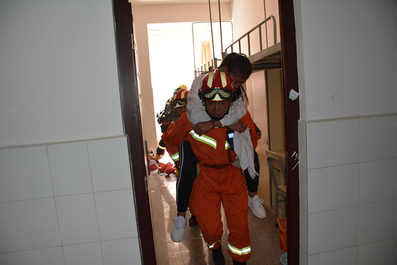 为进一步提高全院师生的安全意识,增强全院师生应对突发事件的能力,努力实践“生命至上,安全发展”理念,建设平安和谐校园,6月22下午,学院安全办主办,后勤保卫部、学生处承办的消防安全应急疏散演练活动在职业学院大学生公寓F幢公寓举行。学院副院长曲向哲、安全办主任钟忠、学生处处长曹友雷及个旧市消防大队官兵以及学院护校队、F幢公寓大学生参加了此次演练。