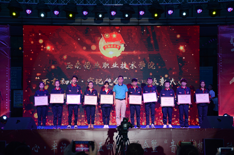 为纪念“五四”运动99周年,进一步传承和弘扬“五四”爱国精神,5月23日晚19:00,学院在图书馆广场举办“不忘初心,牢记使命”五四表彰大会暨“音为梦想,舞动青春”歌手舞蹈决赛。锡业股份团委书记王战蒙、红河学院团委书记尹剑秋、红河卫生职业学院团委书记范渝、个旧市团委书记助理李全、国家一级社会指导员,健美操教练李永芳、云南联力文化传播有限公司总经理孙杰、红河州新华书店有限公司个旧分公司总经理龙静、个旧市锐摄影创意影像林露及学院领导班子成员、全体教职工以及2000余名学生参加活动。活动在庄严肃穆的国歌声中拉开帷幕。