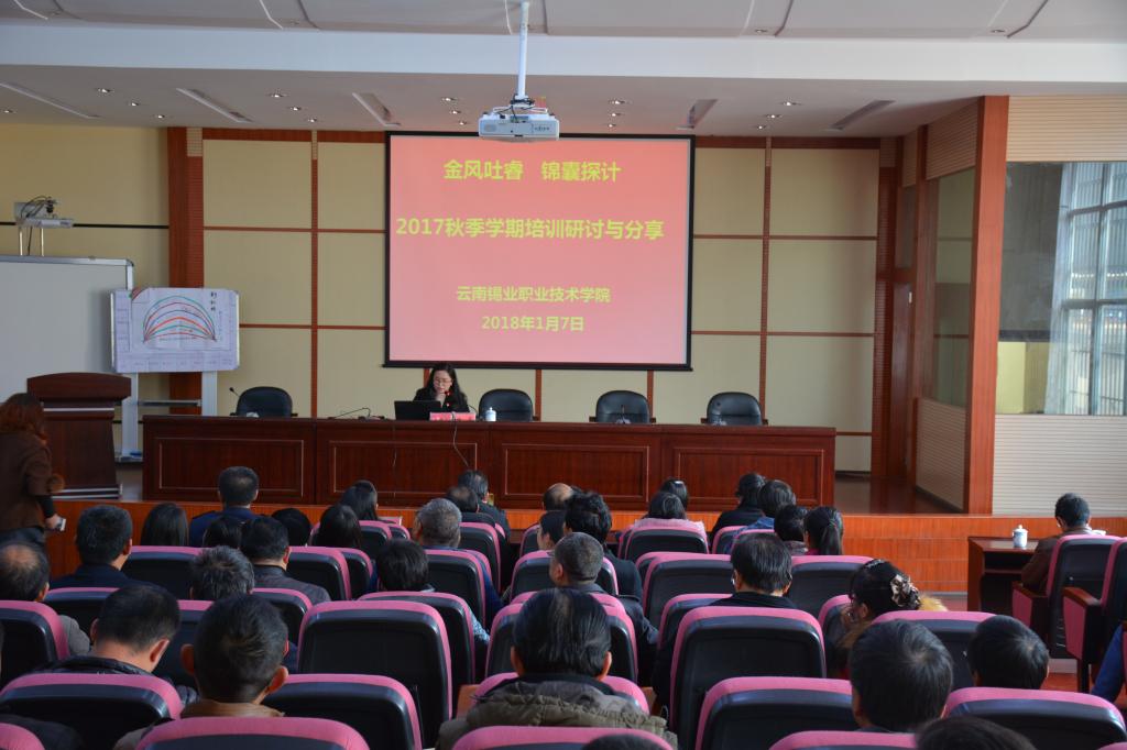 1月7日下午2:30分,学院在图书馆一楼报告厅举行了2017秋季学期教师培训研讨与分享活动。学院领导班子成员以及全院教职工参加了本次活动。活动由教务科研处处长潘薇主持,