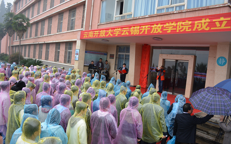 云南开放大学党委书记罗国权代表云南开放大学党委和行政,对云锡开放学院的成立表示最热烈的祝贺;对给予云锡开放学院建设大力支持和帮助的省教育厅,云锡集团控股有限公司及社会各界表示最诚挚的谢意;向云锡开放学院的全体师生员工表示热烈的祝贺和衷心的感谢。