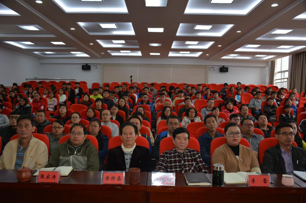学院党委书记黄梓嘉表示,要积极营造昂扬向上、喜庆热烈、文明和谐的浓厚氛围,迅速把广大党员干部和教职工群众的思想统一到党的十九大精神上来,把行动统一到党中央的决策部署上来,引领全体教职工始终不忘初心,牢记使命,在控股公司党委的正确领导下,紧紧围绕“改革、扭亏、转型”工作主线,充分发挥党委的领导核心和政治核心作用,坚持立德树人导向,全面从严管党治校,奋力完成今教育教学各项目标任务;用十九大精神武装党员干部、教职工头脑,汇集强大力量,努力开创2018年云锡职业技术学院改革发展新局面。