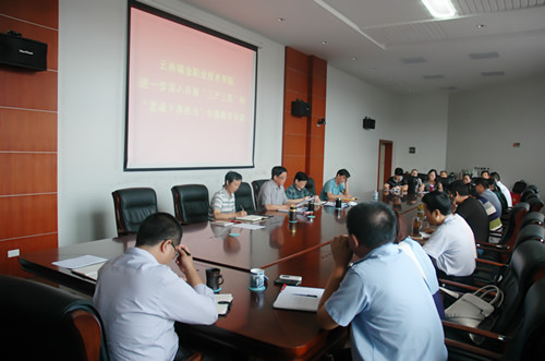 5月28日上午,职业学院党委举办“三严三实”专题党课,常务副书记张跃春以《提高践行“三严三实”的自觉性 ,争做“忠诚、干净、担当”的好干部》为题进行专题党课教育。学院班子人员、助理级以上干部,共计42余人参加了党课学习。
