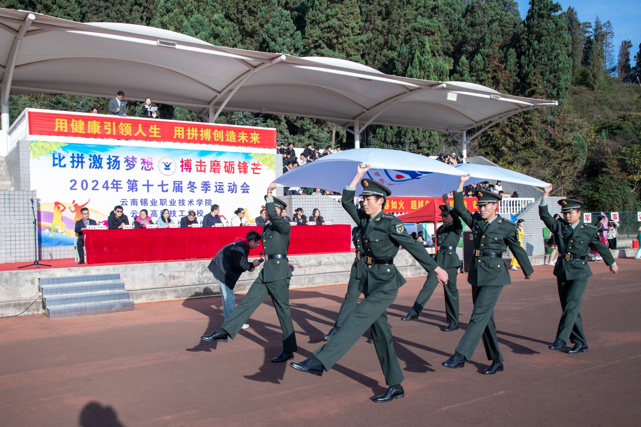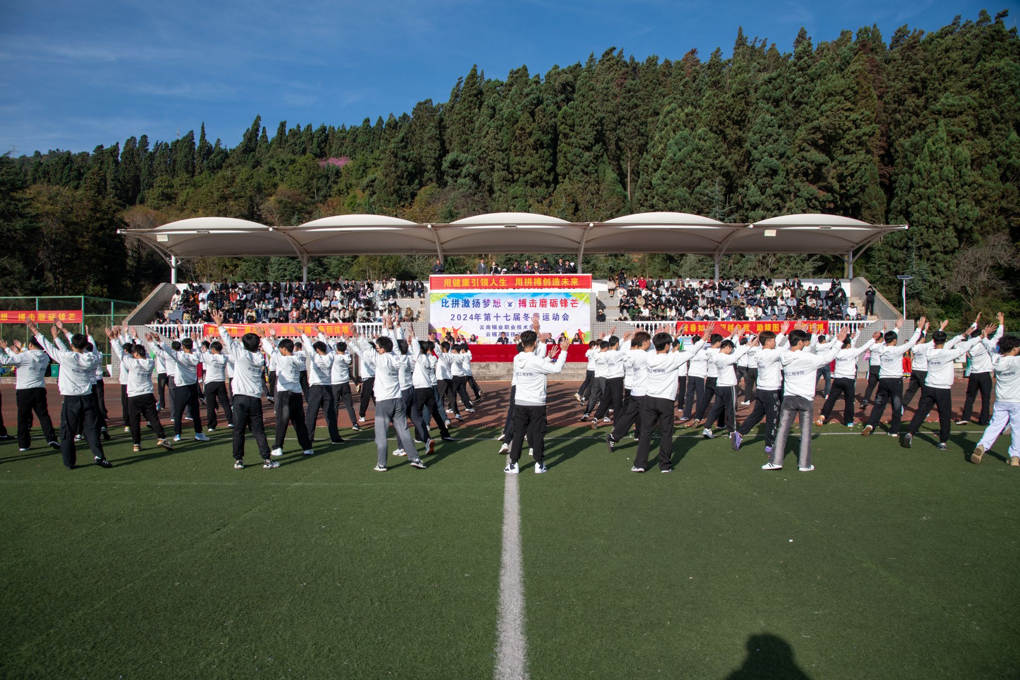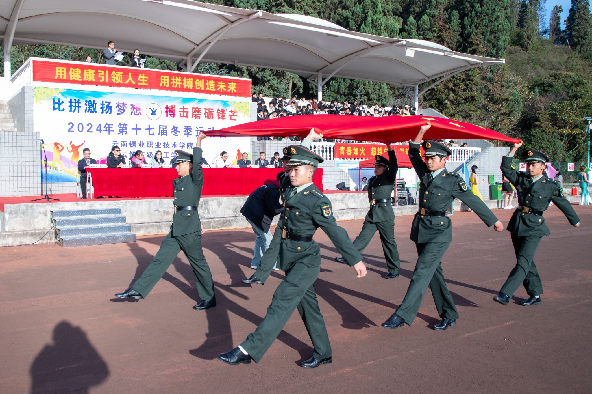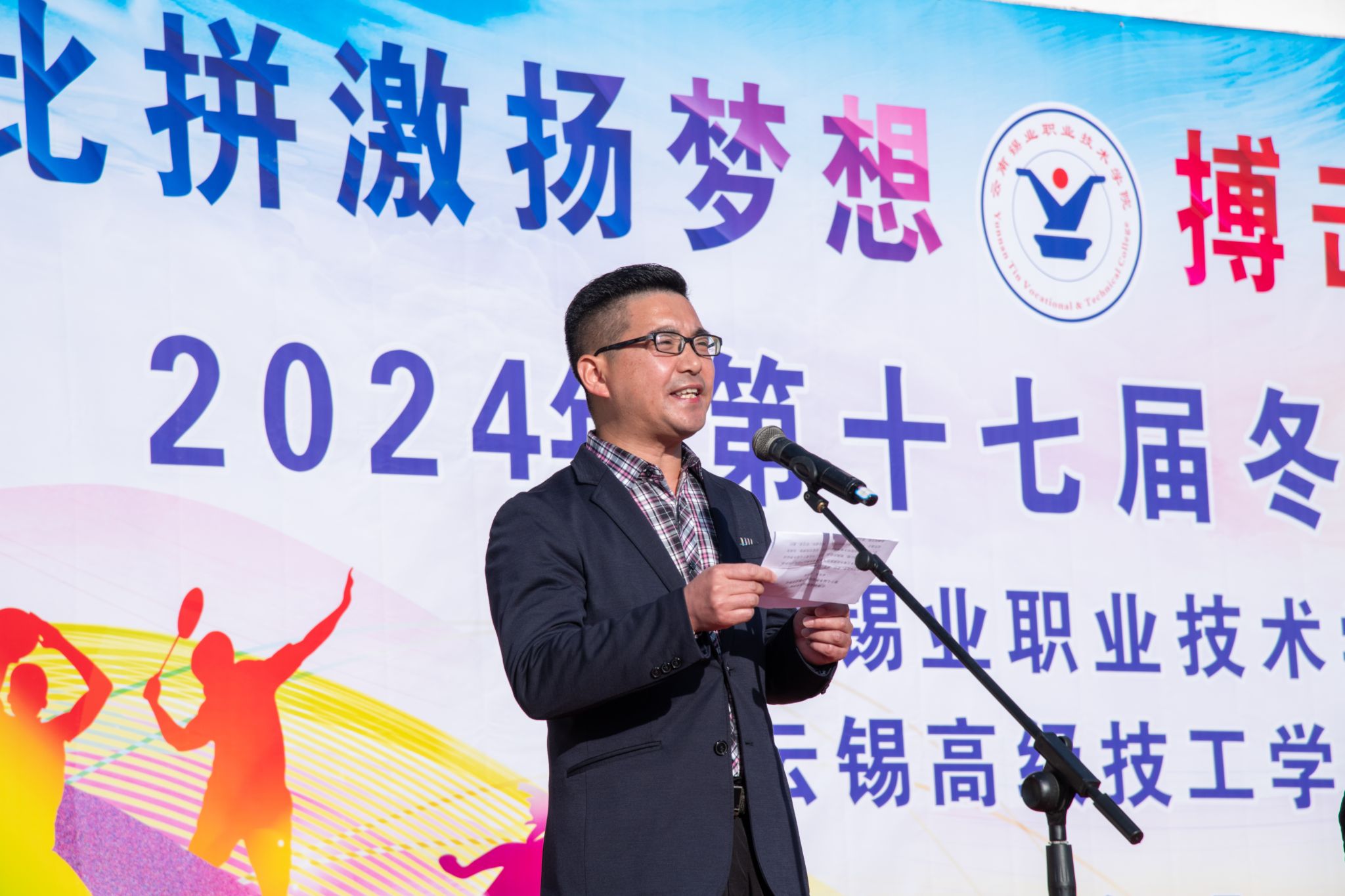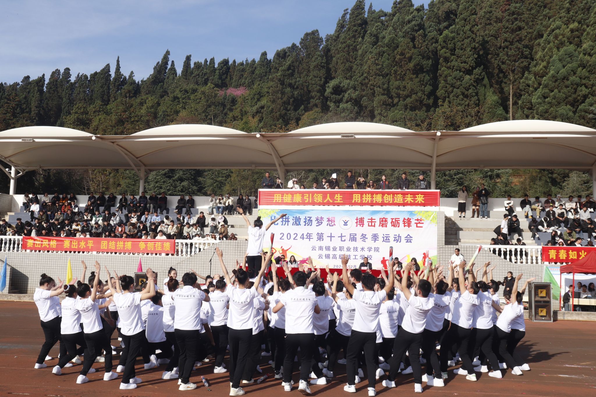 12月11日上午,学院第十七届冬季运动会在田径运动场隆重开幕。本次运动会以“比拼激扬梦想 搏击磨砺锋芒”为主题,旨在通过体育竞技,展现学院学子的蓬勃朝气与拼搏精神,促进学生的全面发展与团队协作。