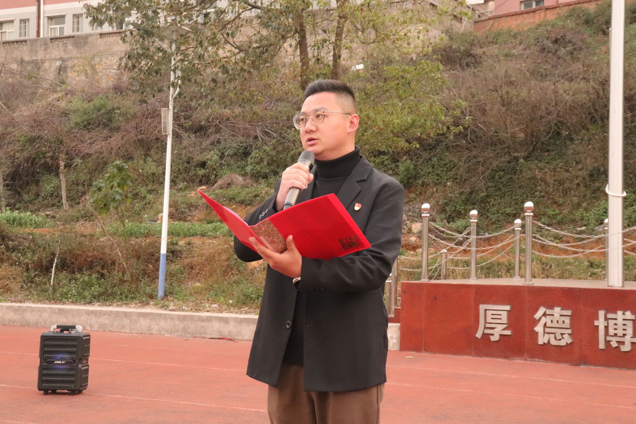 随后,青年教师赵峰结合热映电影《哪吒之魔童闹海》,讲述哪吒精神对当代青年的启示。他提到,哪吒虽被世人误解,却喊出 “我命由我不由天”,凭借不屈不挠精神逆天改命。同时,哪吒在关键时刻挺身而出,展现出责任与担当。这种精神激励着同学们在面对学业和生活中的困难时,要勇于抗争、敢于担当,不向困难低头,勇敢追梦,肩负起时代赋予的责任。