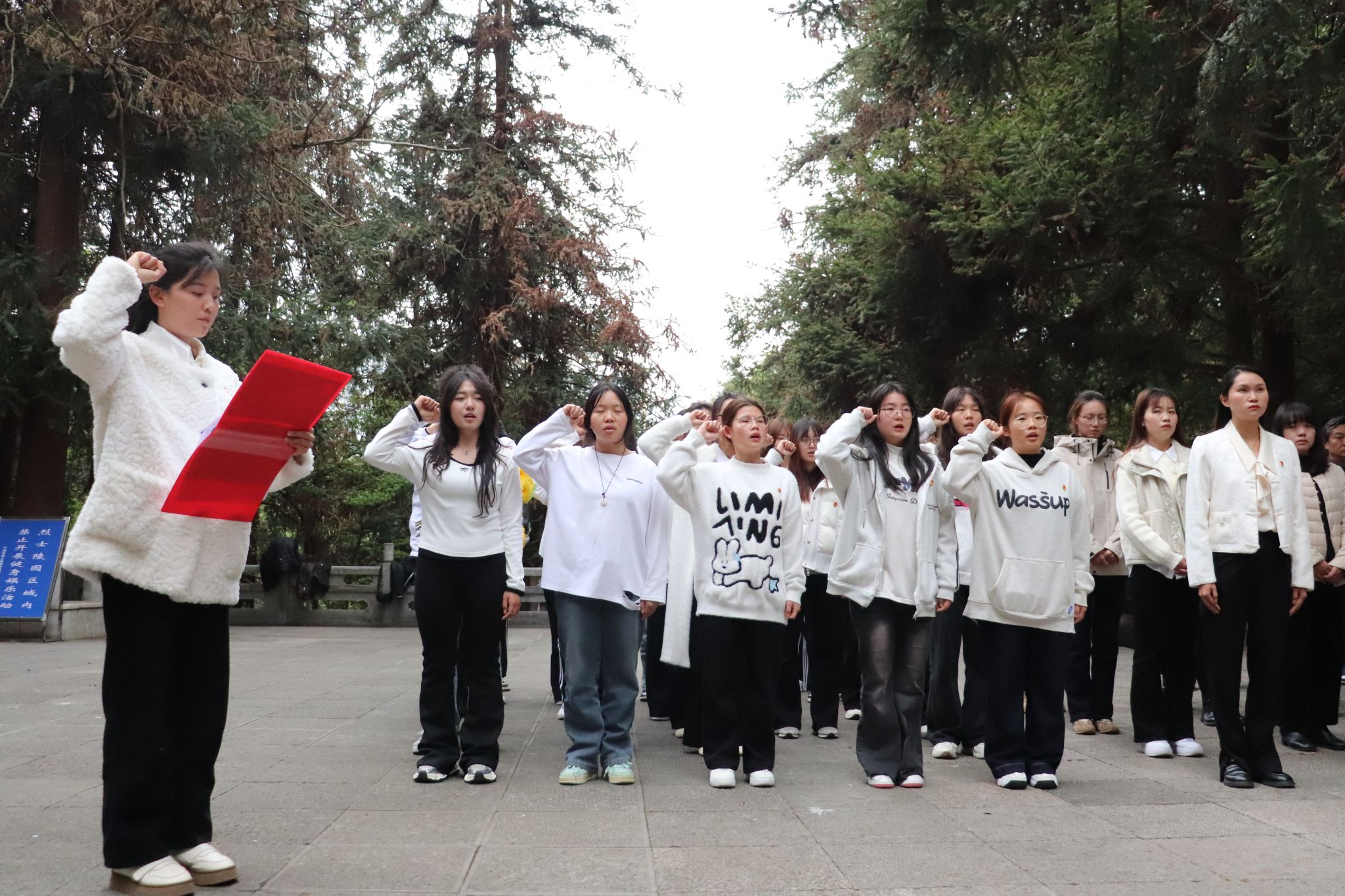 巍巍青山埋忠骨,猎猎红旗祭英魂。在烈士纪念碑前,全体师生列队肃立,高举右拳铿锵有力地重温入党、入团誓词,誓言声在陵园上空久久回荡。师生代表缓步上前敬献花篮,鞠躬默哀致敬,缅怀为民族独立、国家昌盛、人民幸福捐躯的先烈。