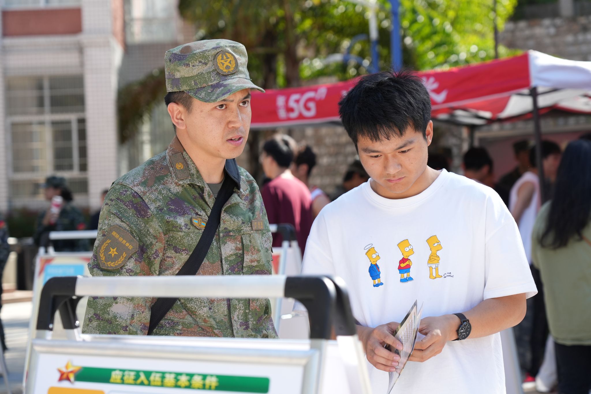 随后在学院图书馆广场开展征兵宣传活动,解读征兵条件、报名方法、优待政策等内容。