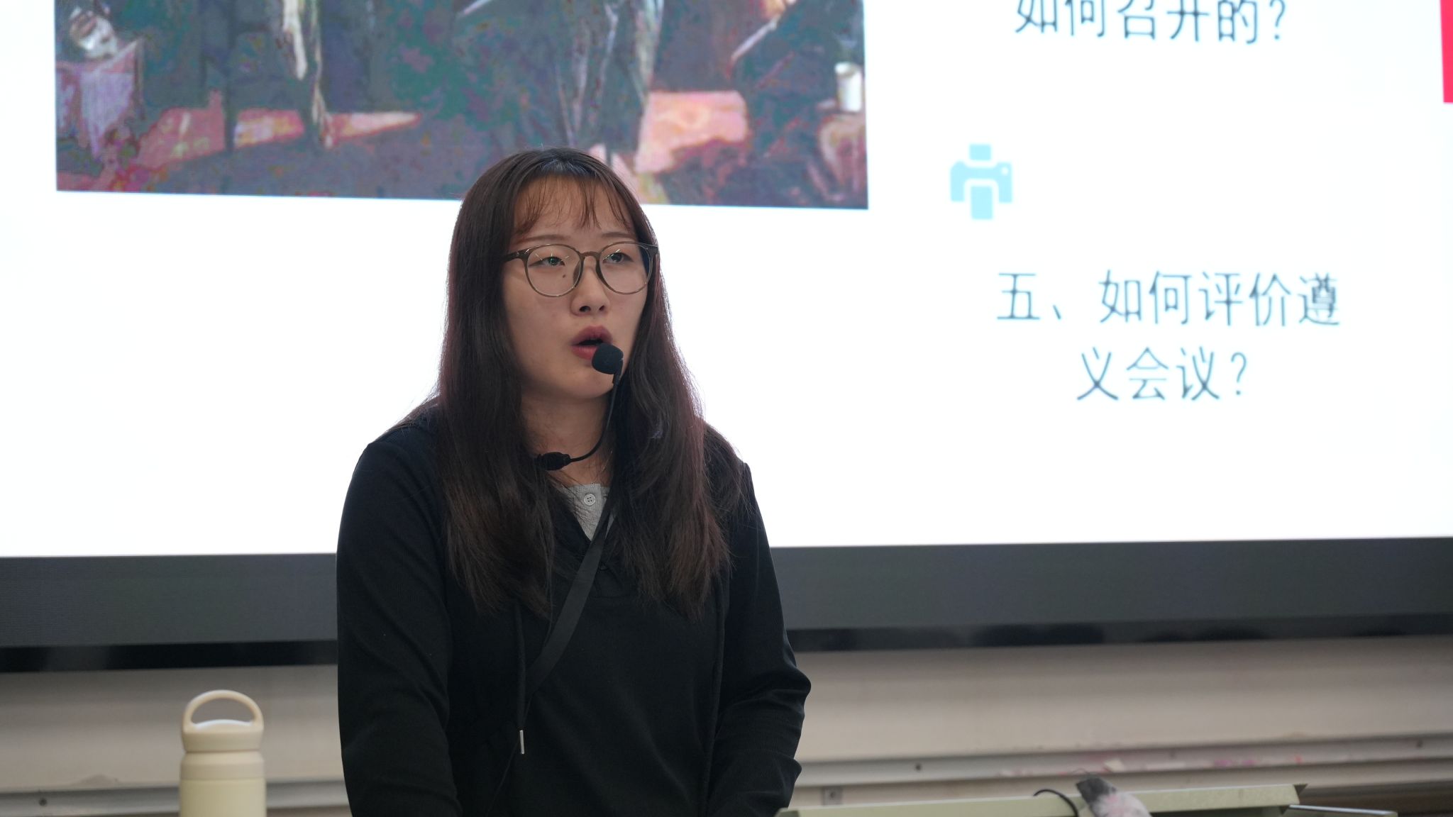 段颖深入浅出地讲述了遵义会议召开的历史背景、会议过程及其伟大意义,引导青年学子深刻认识遵义会议在关键时刻挽救了党、挽救了红军、挽救了中国革命的深远历史价值,其所蕴含“坚定信念、坚持真理、独立自主、团结统一”的精神内涵,至今仍闪耀着时代光芒。她鼓励大家从这段历史中汲取智慧和力量,将实事求是、勇于纠错的品格融入学习与生活,努力成长为有理想、敢担当、能吃苦、肯奋斗的新时代青年。