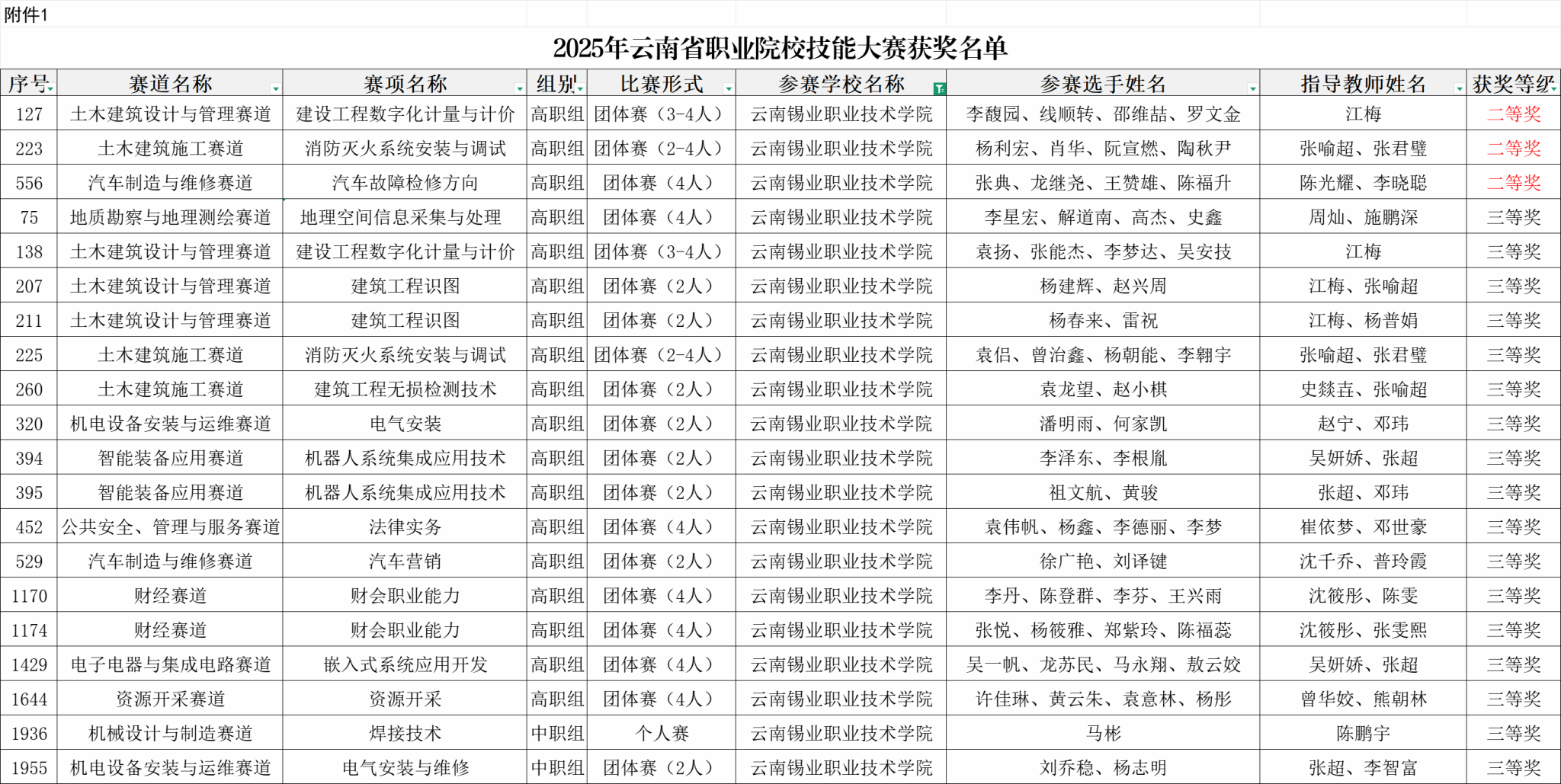 近日,2025年云南省职业院校技能大赛落下帷幕,学院共荣获二等奖 3 项、三等奖 17 项,展现了教师的扎实教学水平和学生的精湛技艺。