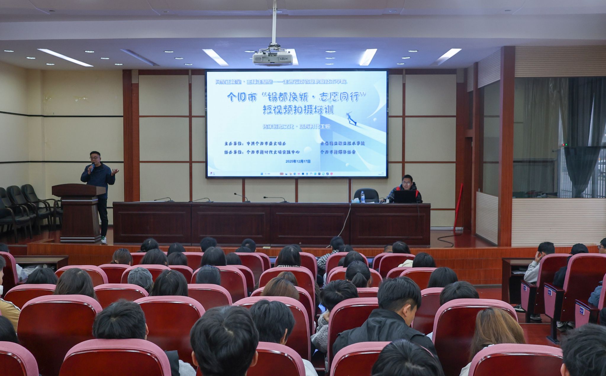 活动同步举办了个旧市“锡都焕新·志愿同行”短视频拍摄专题培训。抖音网红“毛哥房产”结合实战案例,围绕内容创作、传播策略与流量转化等维度进行生动讲解,助力青年学子掌握新媒体技能,为传统文化与现代传播的融合注入新活力。