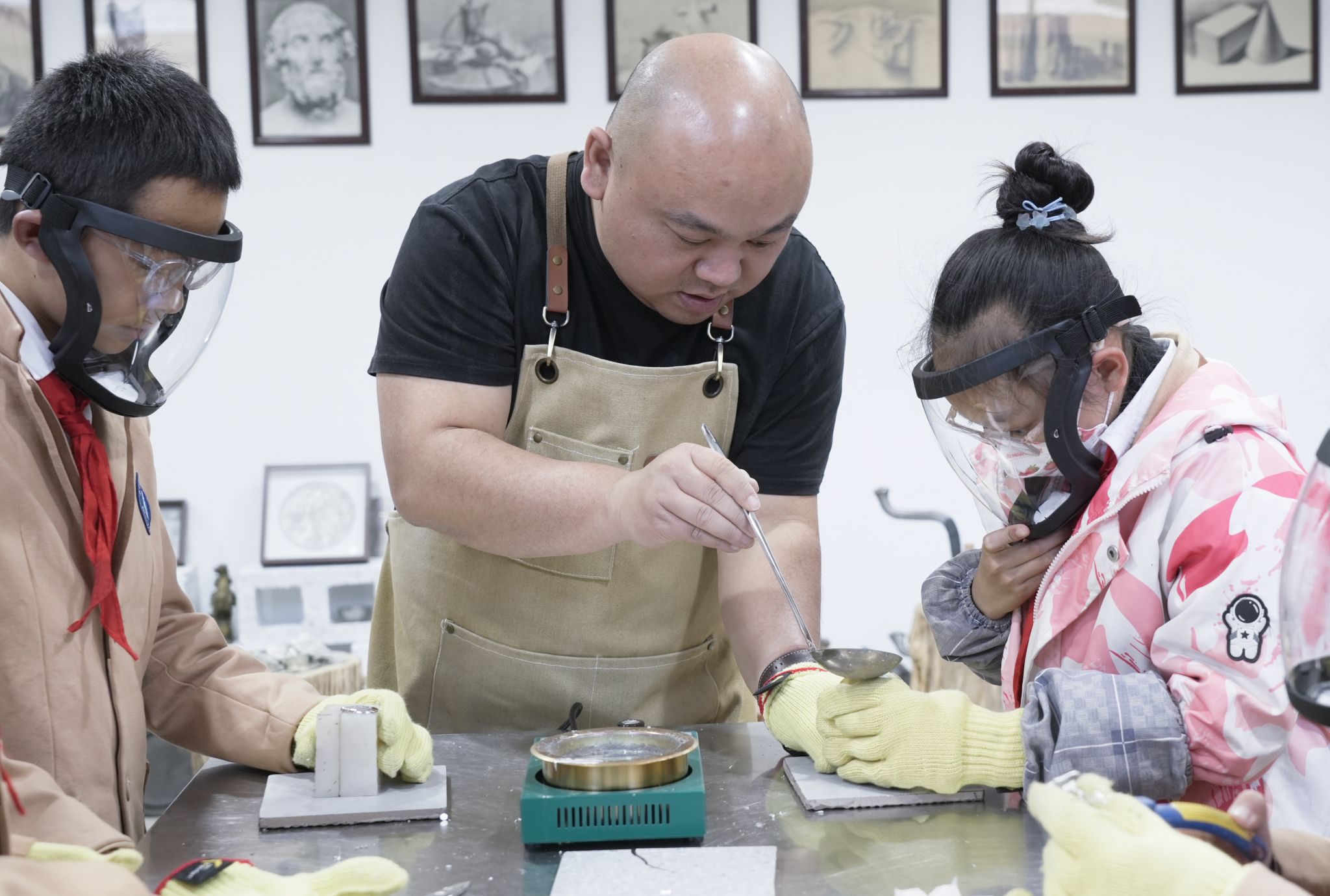 锡工艺体验环节成为研学“人气打卡地”。在专业老师的悉心指导下,孩子们化身“小小工匠”,专注投入浇筑、塑形、打磨等工序。当一件件独具匠心的锡工艺品在指尖成型,纯真的笑容在每张脸上绽放。