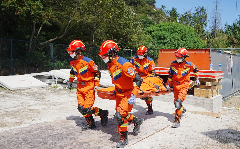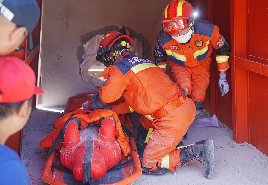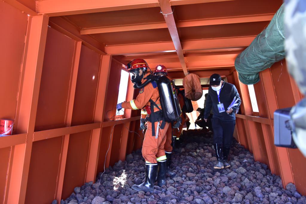 在地震灾害被困人员搜救处置项目中,选手仿佛置身于真实的地震现场,配合默契,搬运设备、设置支护、凿岩穿孔、全力搜救……每一个环节都紧张有序,团队协作和应急处置能力得到了充分体现,他们用实际行动诠释了什么是责任与担当。