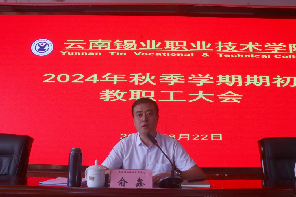 学院党委书记俞鑫围绕“学院发展怎么看、怎么办和怎么做”三个方面作讲话。他强调:一要锚定目标,团结奋斗。要准确把握学院“聚力打造锡铟全产业链高素质技术技能人才培育平台”的发展定位,以“功成不必在我”的奉献意识和“功成必定有我”的担当精神,抢抓机遇,锚定目标,办人民满意的教育。二要深化改革,持续赋能。要坚定信心,擦亮国企办学品牌,扎实推进作风革命效能革命,集中力量攻坚克难,抓好工匠学院、产业学院、高水平专业群建设等各项重点工作,持续提升教育教学质量和人才培养质量,为控股公司打造全球最优的锡铟产品供应商和全球最优的锡铟行业解决方案提供商建设工作贡献力量。三要知责于心,主动担当。要明晰责任,强化基础管理,守好规矩底线,以“严”字当头和“实”字当头的担当作为提高工作效率,积极为学院高质量发展建言献策,为社会输出有道德、有知识、有能力、有担当的新时代青年。