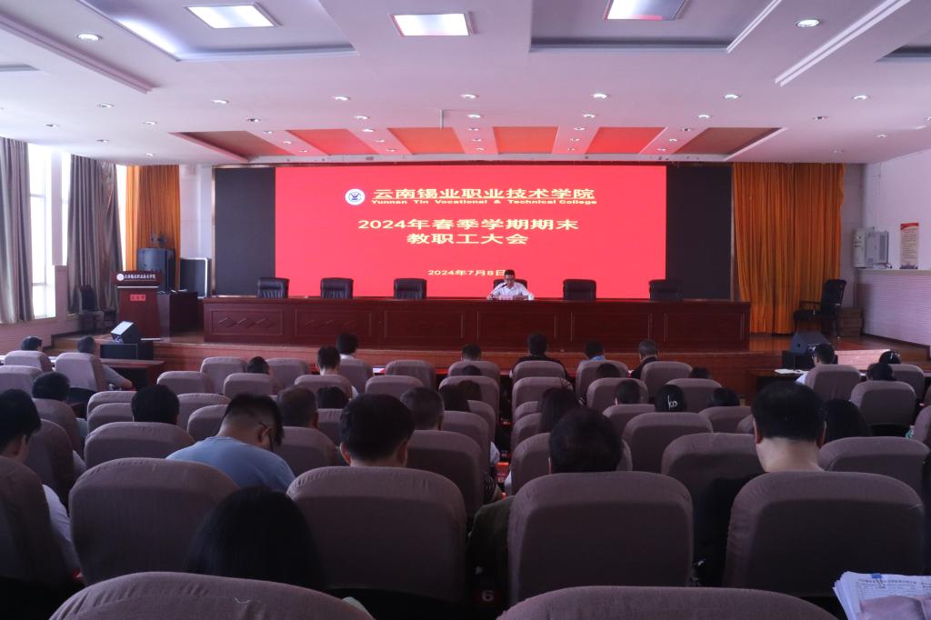 7月8日下午,学院在508报告厅召开2024年春季学期期末教职工大会,总结回顾2024年上半年工作,安排部署2024年下半年工作。学院副院长曲向哲主持会议并讲话,学院全体教职工参加会议。