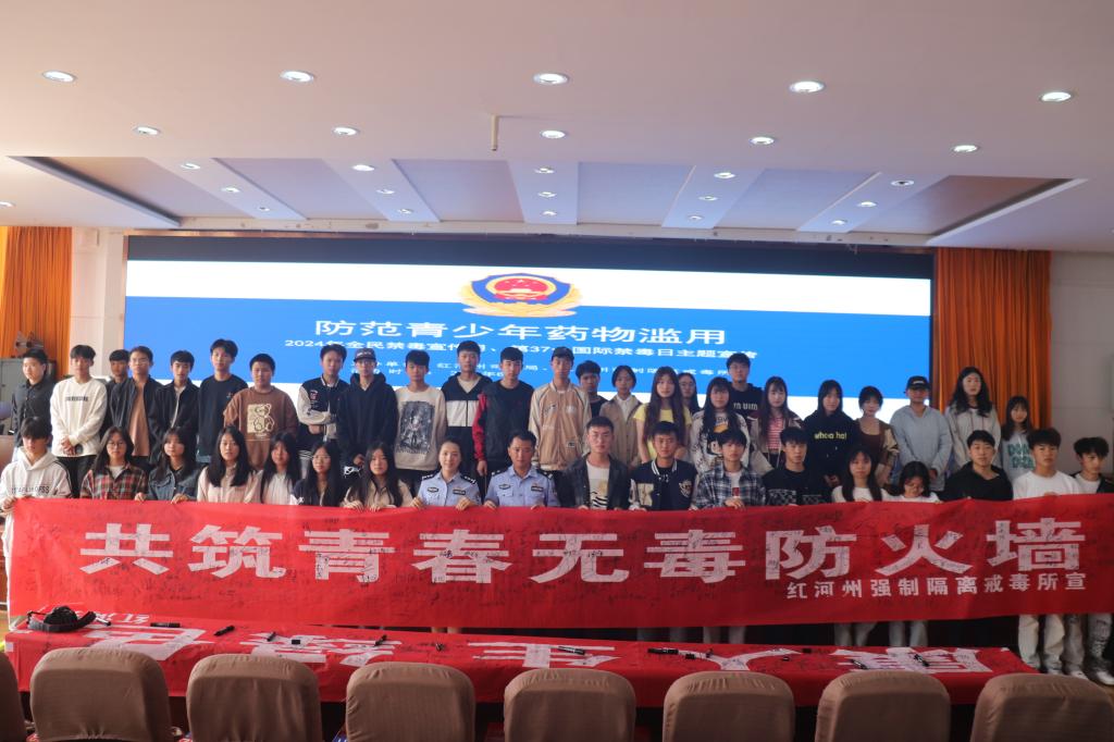 为进一步增强学生识毒、防毒、拒毒的意识和能力,筑牢校园禁毒防线,营造平安、健康、无毒的校园环境,6月26日上午,学院邀请红河州强制隔离戒毒所到校开展“6•26国际禁毒日”主题宣传活动。