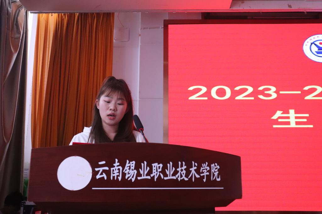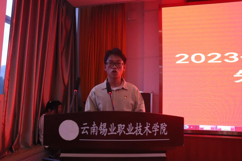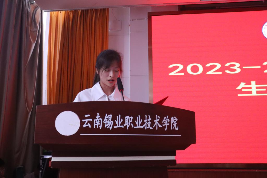 机电工程学院121名优秀学生、2个先进班集体被表彰。22级供用电技术班周帆代表被表彰的优秀学生发言,22级电气自动化技术班孟玲丽代表被表彰的班级发言,他们号召广大青年学子要树立远大的志向和目标,保持谦虚和谨慎,不骄不躁,时刻铭记自己的初心和使命,不断追求进步,勇于挑战自我,敢于面对困难和挑战,不断提升自我,做到知行合一,将所学知识和技能运用到实际工作和生活中,为学校、家乡和国家贡献自己的力量。(祖艳竹)