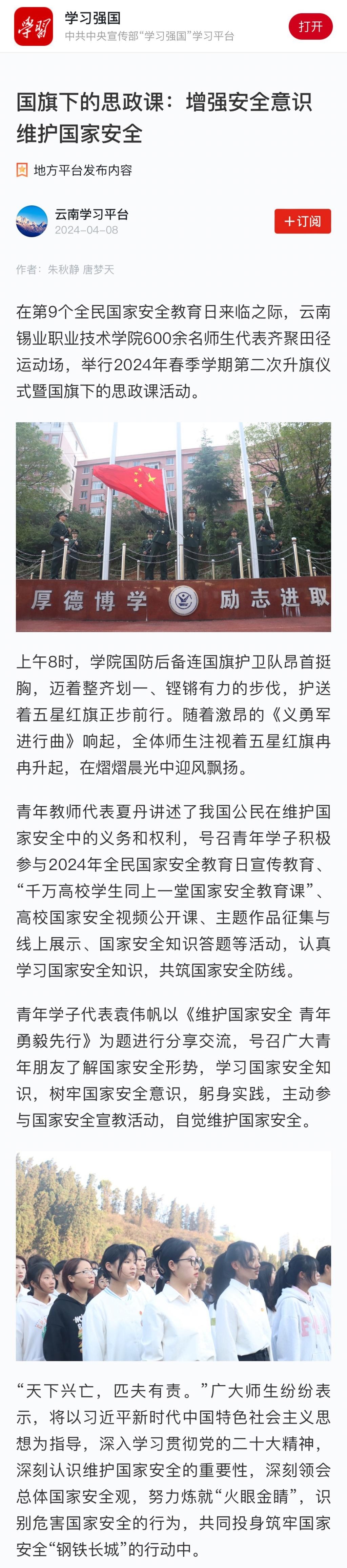 媒体关注|学习强国:【国旗下的思政课】增强安全意识 维护国家安全