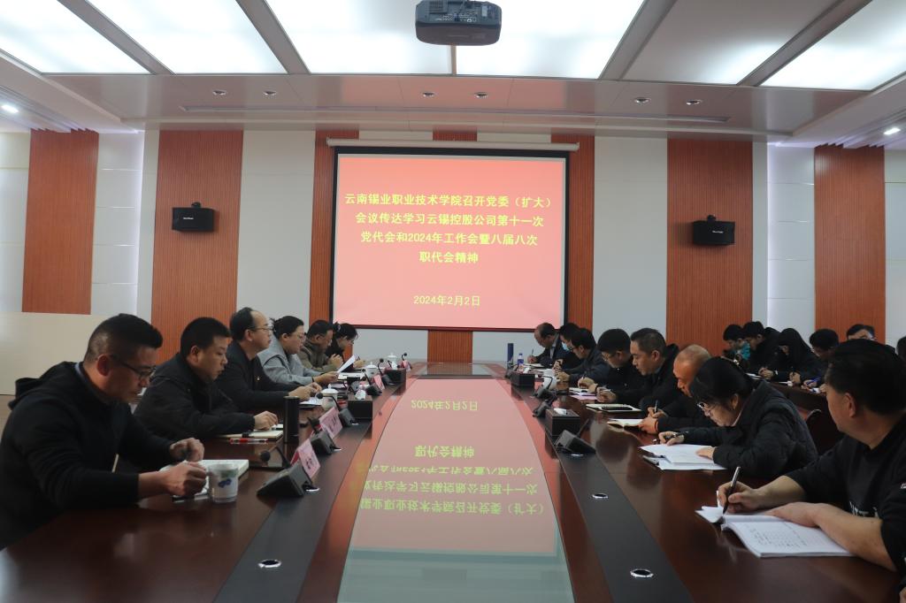 2月2日,学院在大会议室召开党委(扩大)会传达学习云锡控股公司第十一次党代会精神和2024年工作会暨八届八次职代会精神。