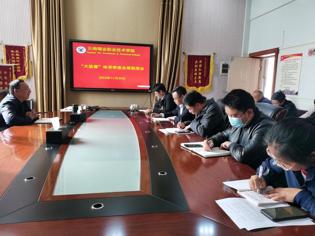 11月30日,学院在小会议室召开“大监督”体系季度会商联席会,会议由学院党委委员、纪委书记马亚三主持。