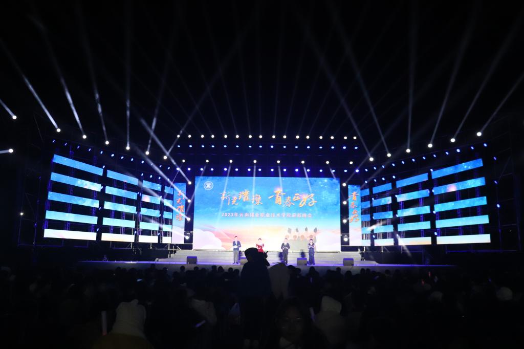 繁花如织,灯火似梦,星光点点拥簇着千余师生欢聚一堂。11月20日,学院“新光璀璨 青春正好”2023级迎新晚会在足球场精彩上演,学院领导班子成员、红河卫生职业学院、红河职业技术学院、红河州第三人民医院、个旧市人力资源和社会保障局、个旧市委组织部、个旧市公安局锡城派出所、个旧市融媒体中心、个旧市第一职业高级中学、共青团个旧市委、中国联通个旧市公司等单位相关负责人与学院全体师生一起观看演出。