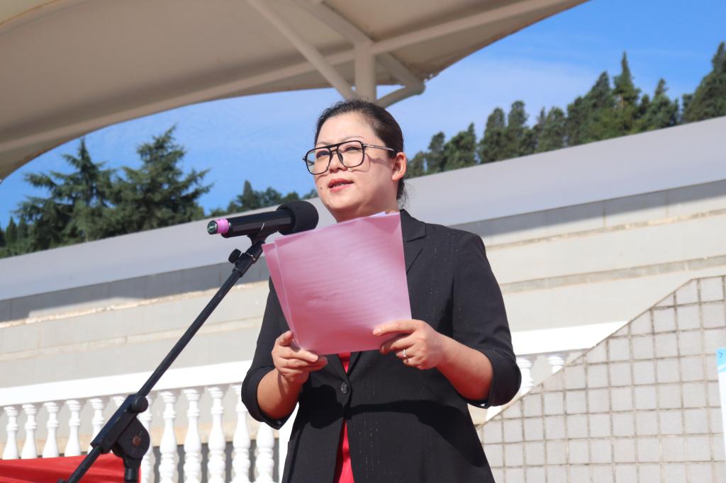 学院党委副书记、院长李蕾致辞并作军训动员,她代表学院全体师生员工对2023级新生表示诚挚的欢迎!向锡业股份党群工作部以及全体教官表示最衷心的感谢!