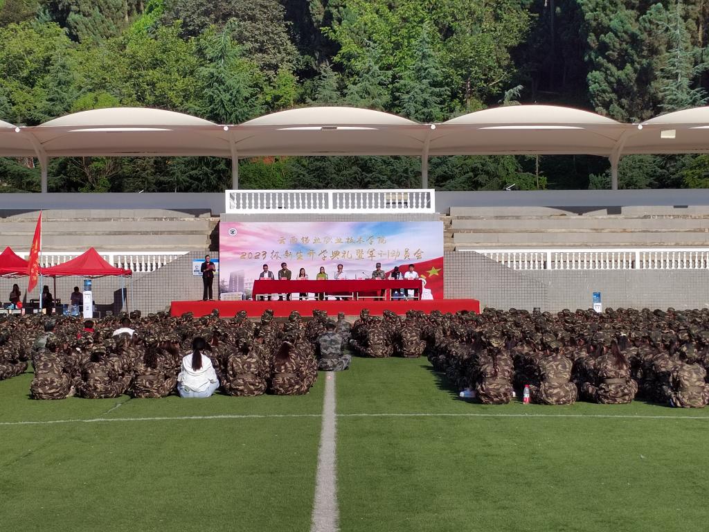 秋风起,新生集,军训场上铁骨情。红旗飘扬高楼前,激情澎湃燃壮志。9月1日上午,学院在田径场隆重举行2023级新生开学典礼暨军训动员大会,学院领导班子成员、全体军训教官、各二级学院负责人以及2023级全体新生列席参加。