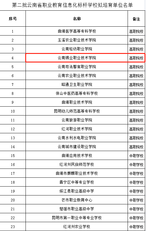 近日,云南省教育厅公布了第二批省级职业教育信息化标杆学校拟培育名单,全省共有23所院校入选,学院位列其中。