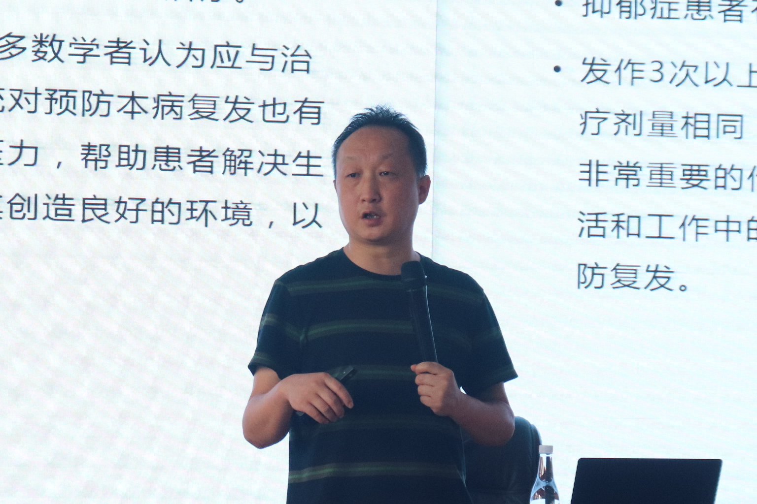何静结合多年临床工作经验对抑郁症和焦虑症的危害、病因、临床表现、检查方法、诊断治疗等方面进行了深入浅出的讲解。他指出,抑郁症是现在最常见的一种心理疾病,以连续且长期的心情低落为主要的临床特征的综合征,是现代人心理疾病最重要的类型;焦虑是在面对一些即将来临或可能发生的灾祸或重大生活事件时,机体适应环境变化而产生的一种复合情绪反应。他妙趣横生、幽默诙谐的语言,不仅活跃了现场气氛,也让与会人员对于抑郁焦虑的表现、诊断和识别有了更深刻的认识。