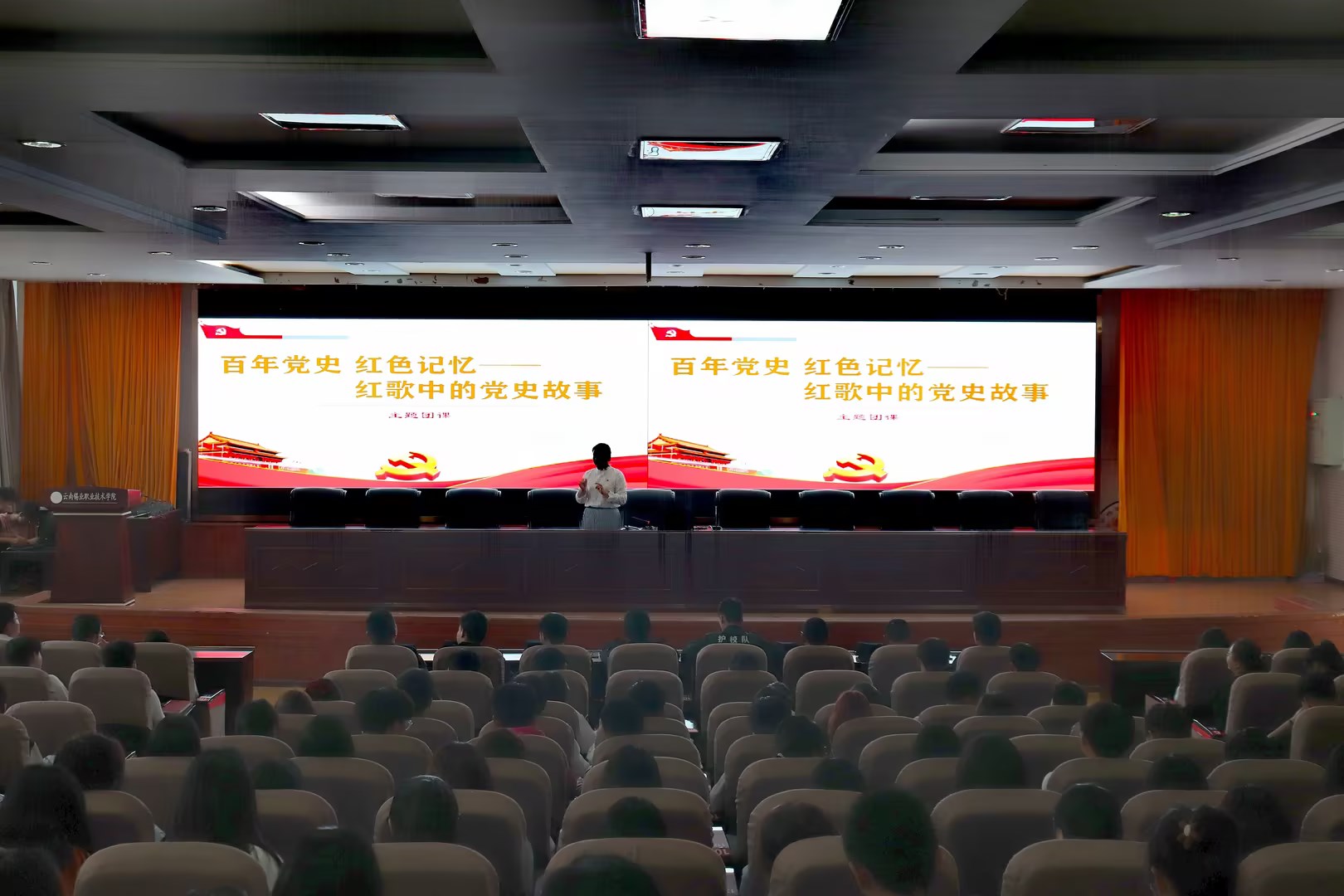 5月18日,为深入学习贯彻习近平新时代中国特色社会主义思想,引导青年学子厚植爱党爱国爱社会主义的情感,学院在508报告厅开展了“党的故事”进校园活动,学院团委书记李啉汎为各社团、大学生理论宣讲团、青年马克思主义协会成员讲述了红歌里的党史故事。