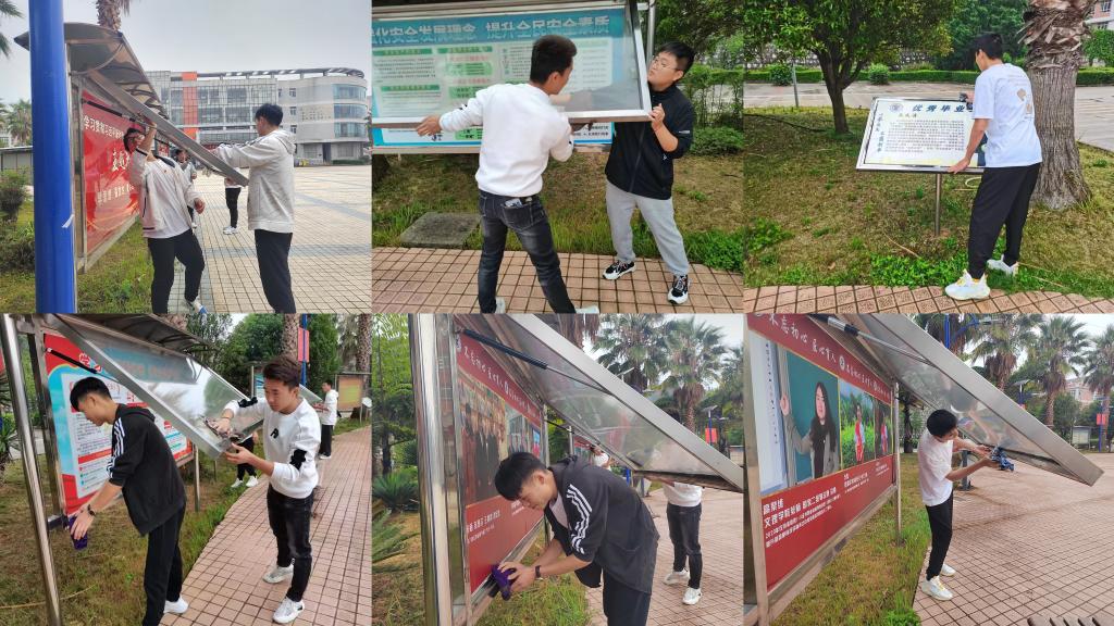 活动中,师生还一起观看了“不惰者 众善之师也”视频、参观了学院“大力弘扬劳模精神、劳动精神、工匠精神”宣传文化栏、擦洗了宣传栏,让师生进一步深化了对“劳动最光荣、劳动最崇高、劳动最伟大、劳动最美丽”的认识。