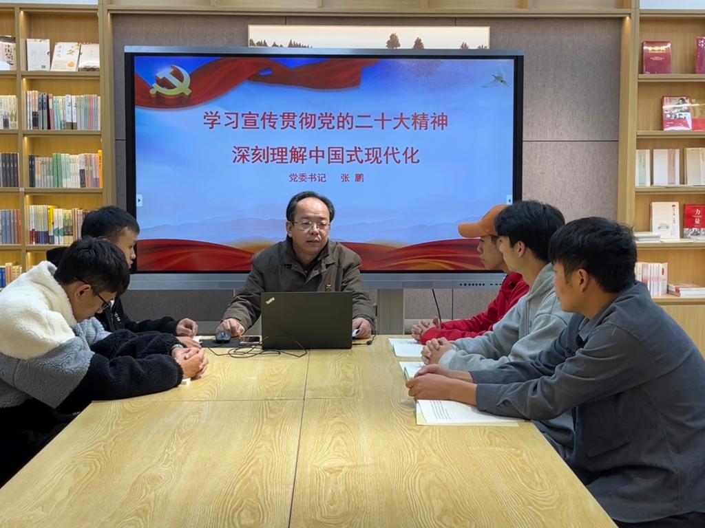 学院党委书记张鹏以“学习宣传贯彻党的二十大精神,深刻理解中国式现代化”为题,围绕中国式现代化的目标、中国式现代化的本质要求、中国式现代化的特色及文化传承以及为什么要坚定不移推进中国式现代化重点阐释了中国式现代化的中国特色。