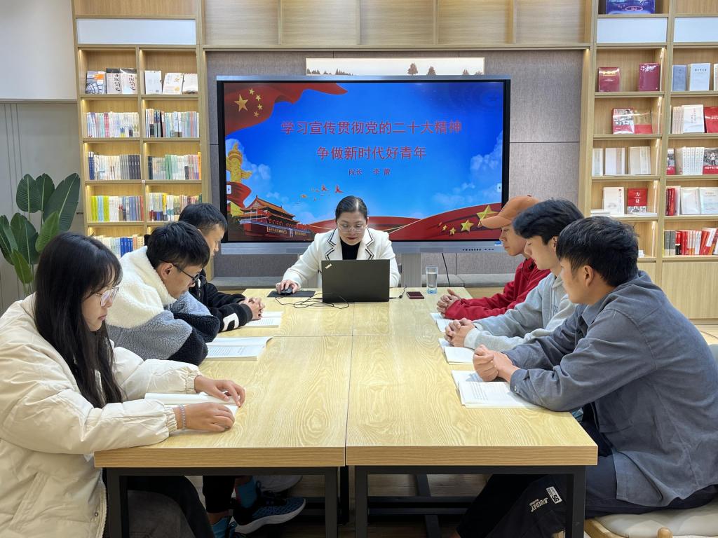 学院院长李蕾以“学习宣传贯彻党的二十大精神,争做新时代好青年”为题,强调学习贯彻党的二十大精神,要把握其重要论断,要知行合一,要牢记习近平总书记的嘱托,要牢记使命与担当。