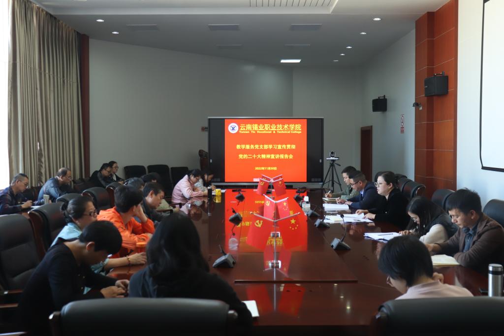 11月30日,学院院长李蕾到教学服务党支部宣讲党的二十大精神。