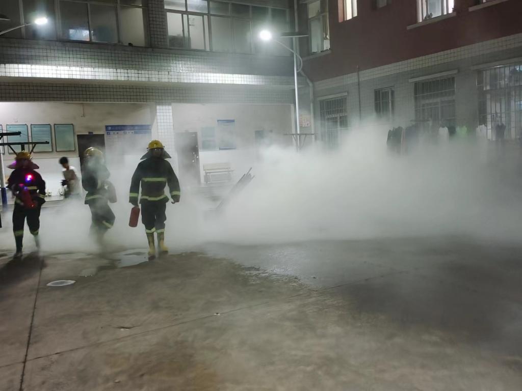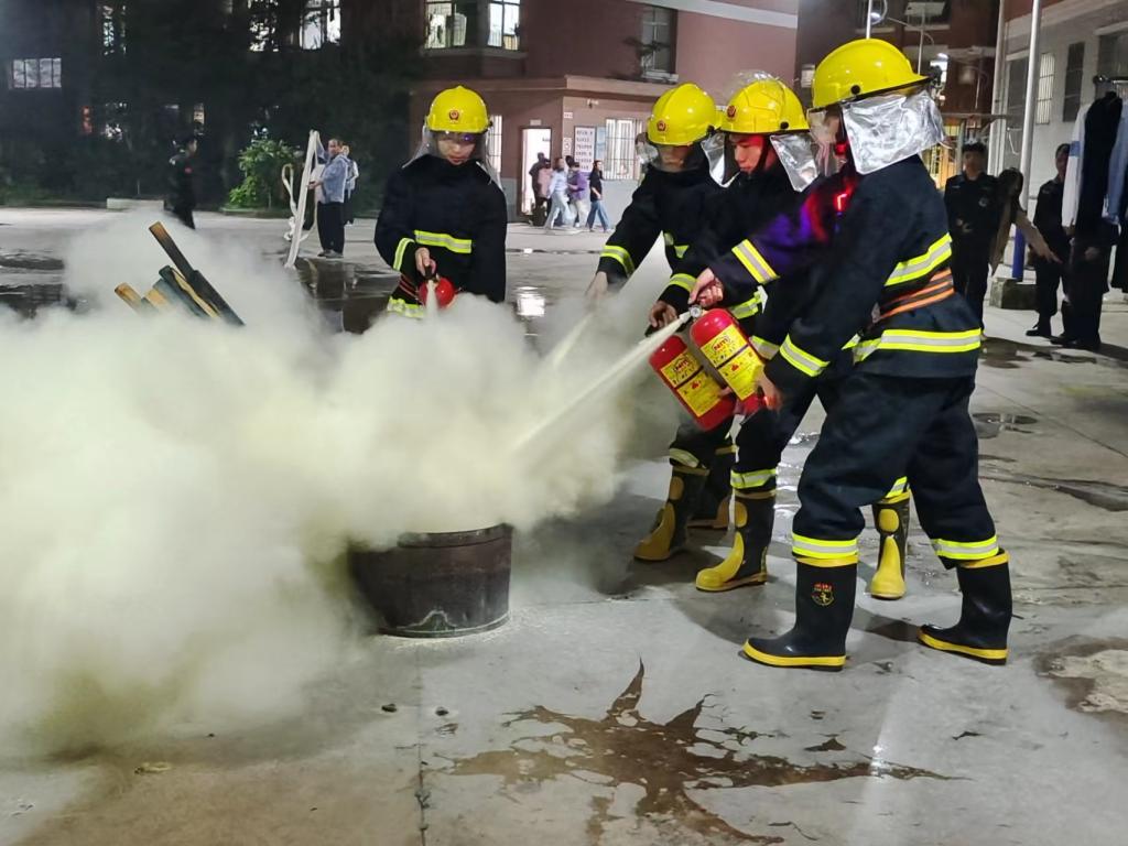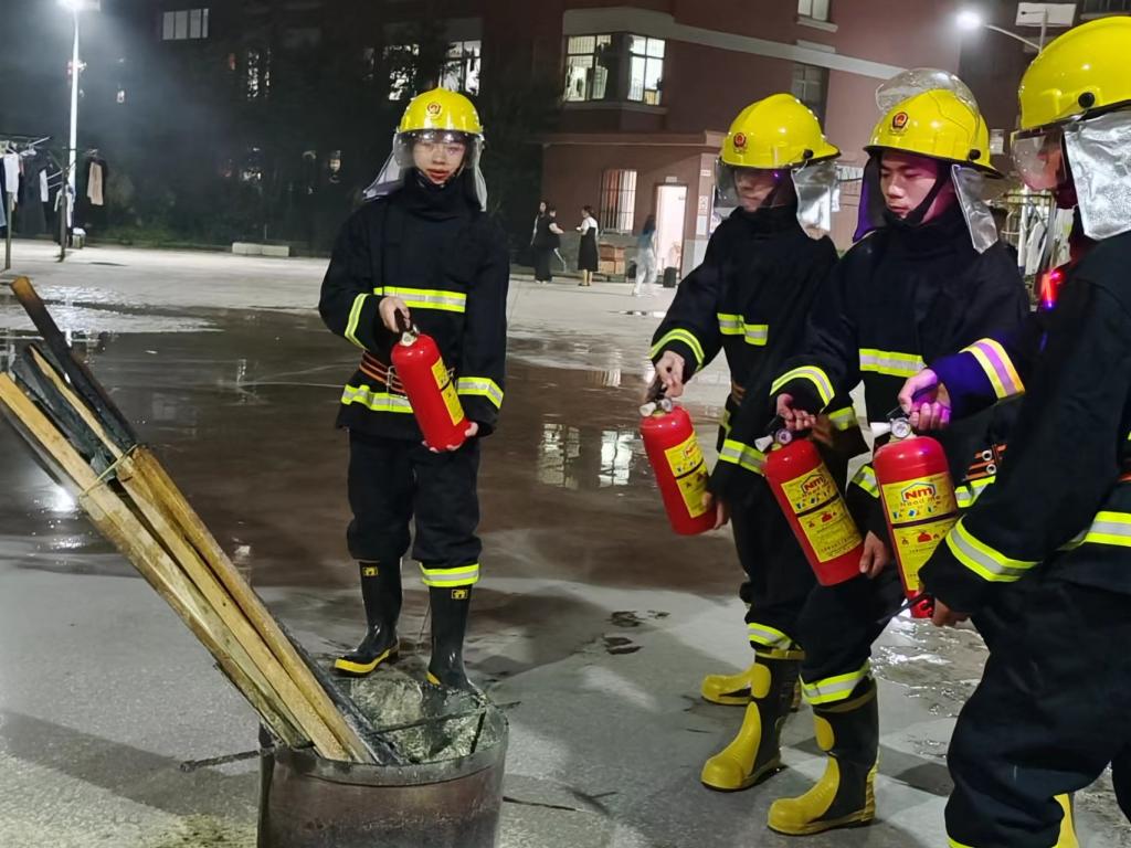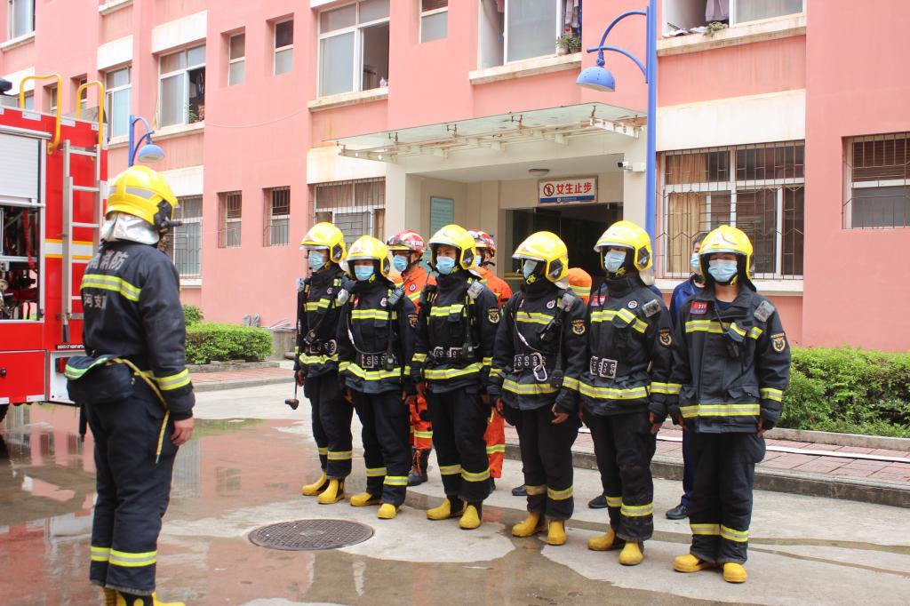 消防救援队15名消防员以及学院安全保卫处、学生护校队、微型消防站全体人员参与演练。