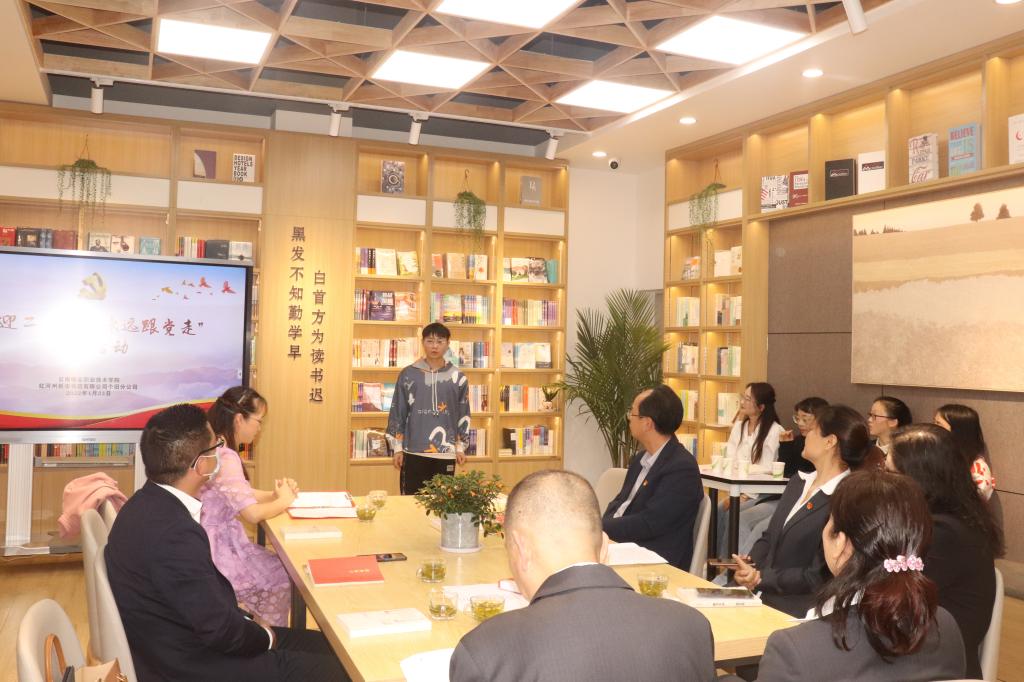4月23日,学院在图书馆校园阅读栈举办“喜迎二十大·永远跟党走”读书活动,推动全民阅读、建设书香校园。红河州、个旧市新华书店负责人,学院党政领导、各部门负责人、学生代表参加了活动。