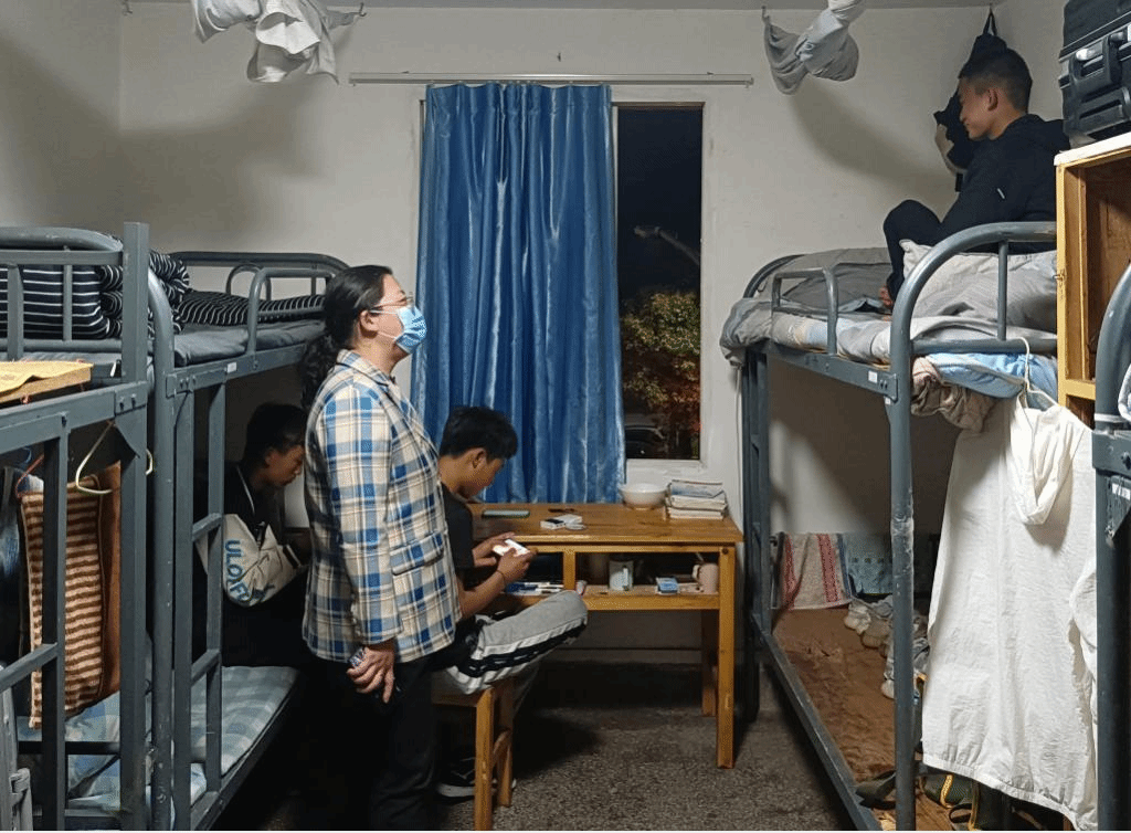 按照学院党委统一部署,学院4个党支部分别由院领导、防控办及支部支委组成“党员先锋队”深入宿舍、班级,积极开展疫情防控宣传教育,严查宿舍卫生与安全,认真排查住宿情况、打卡情况以及翻墙外出等违纪行为,清点人数,确保不遗漏任何一个学生。