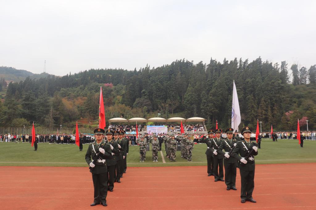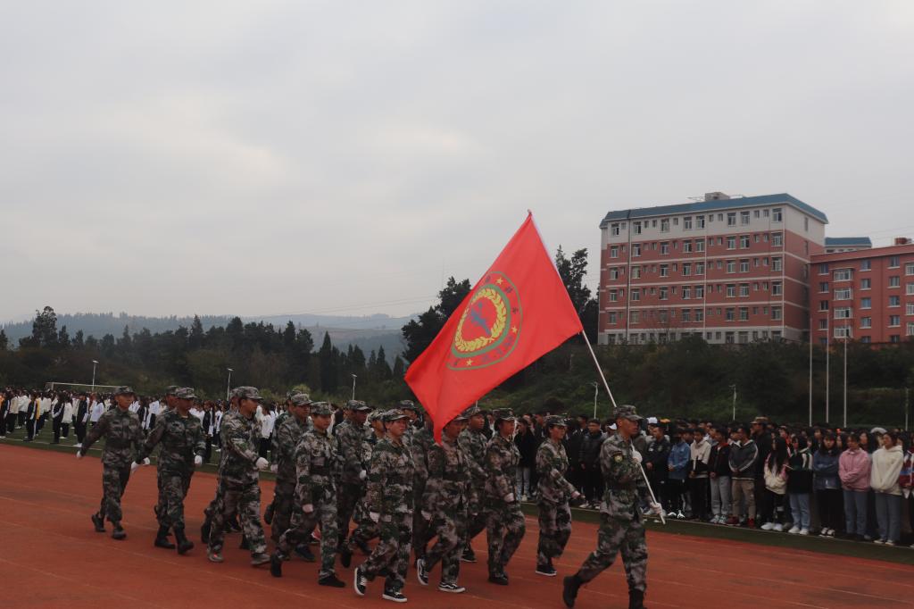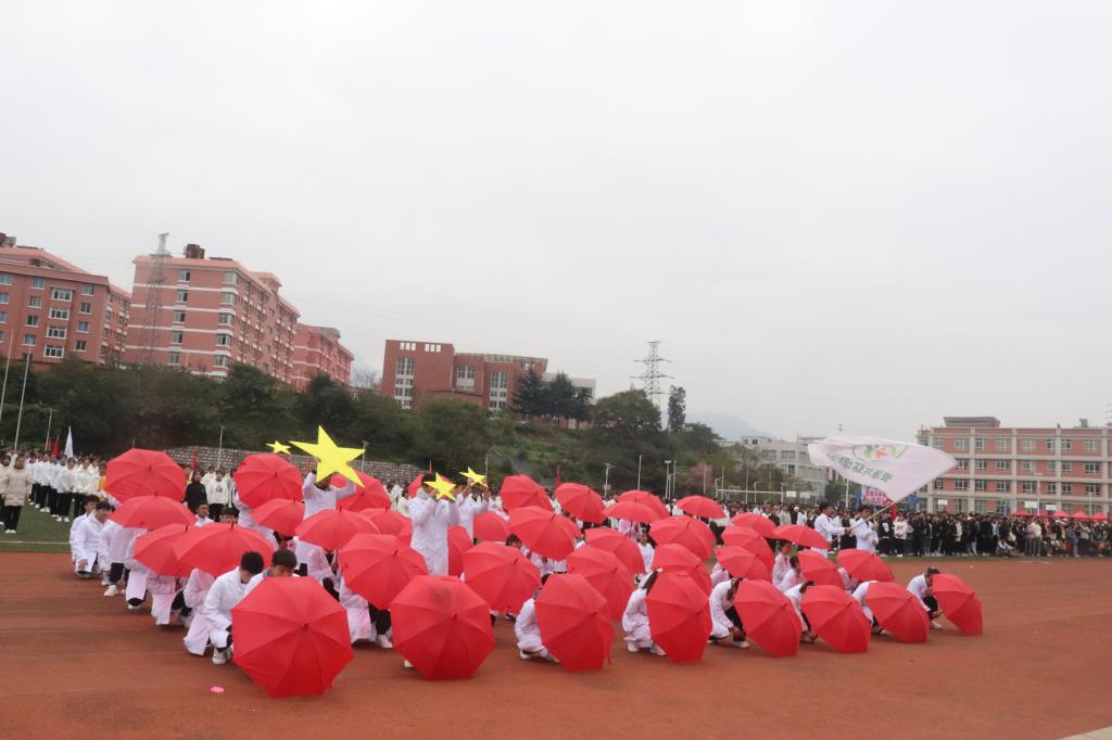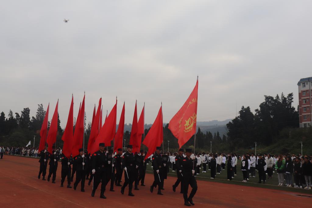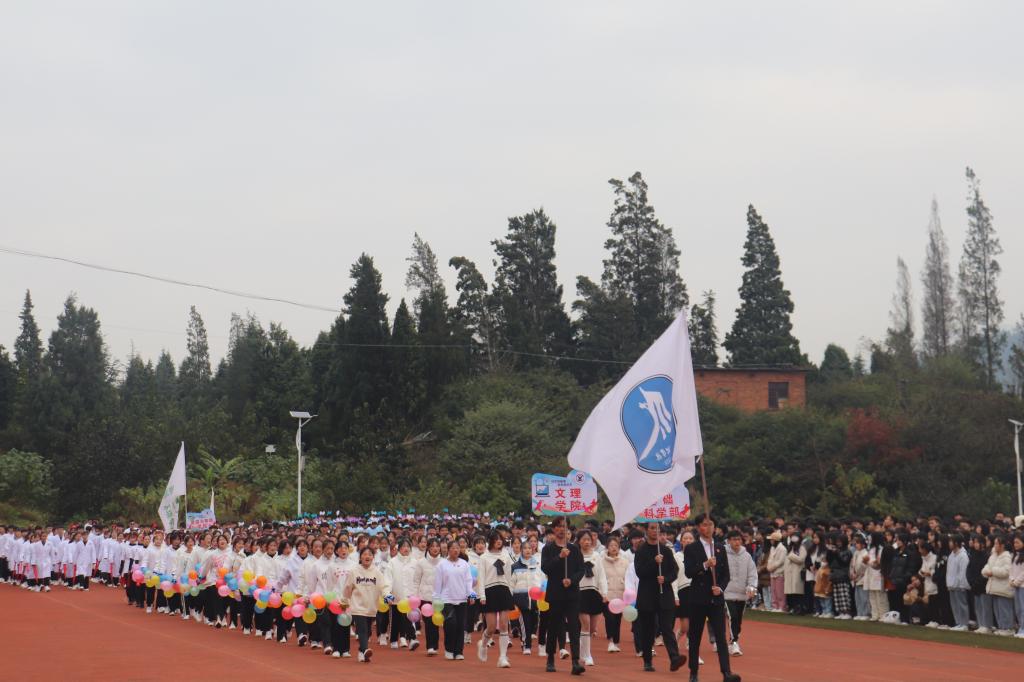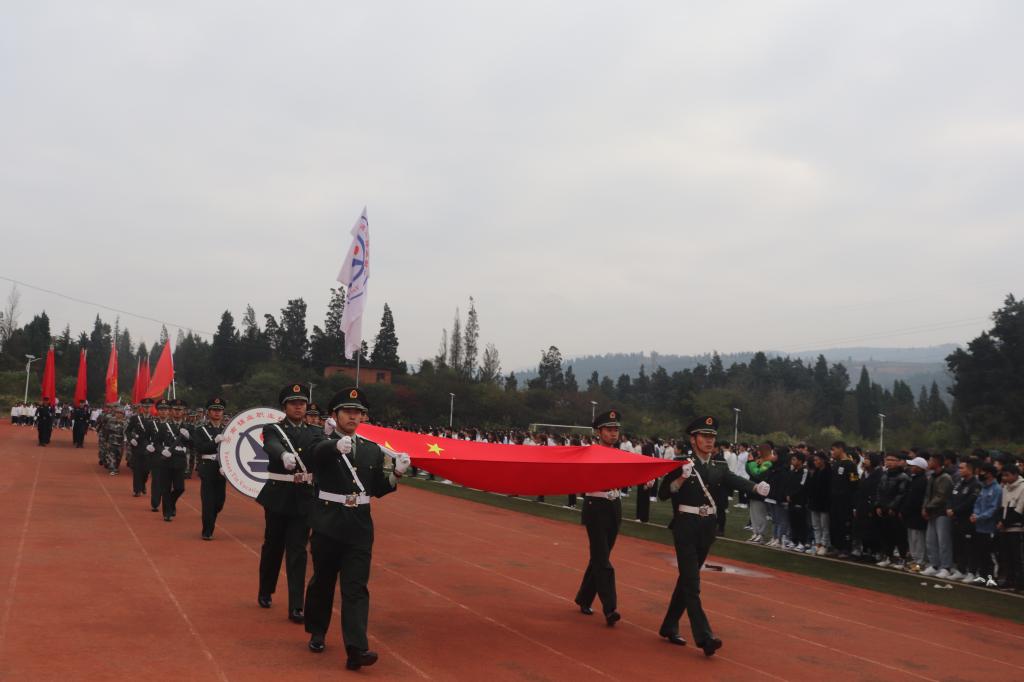 伴随着慷慨激昂的《运动员进行曲》,国旗护卫队、校旗队、红旗方队、二级学院代表队、展演方队依次入场。整齐划一的动作,铿锵有力的步伐,都彰显了学院学子朝气蓬勃的精神面貌和顽强拼搏的精神。