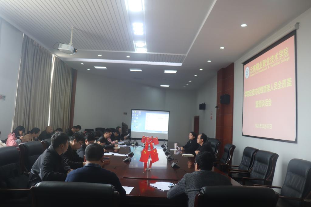 11月17日,学院纪委在教学楼中会议室开展对“一把手”全覆盖谈话工作。学院党委书记张鹏,党委副书记、纪委书记刘青出席谈话会议。