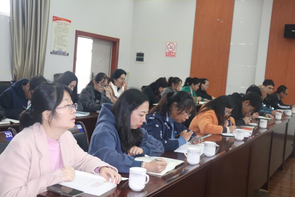 基础部优秀教师李玲晋领学了毛泽东主席诗词《七律·人民解放军占领南京》;部分优秀教育工作者、班主任、辅导员分别作了学习交流发言。