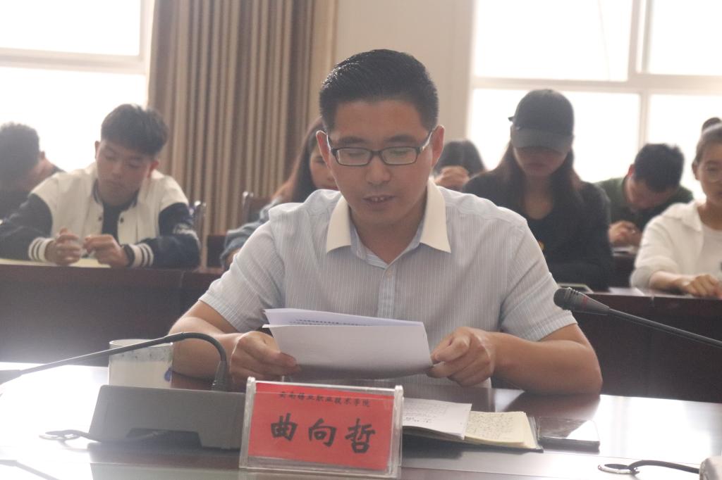 副院长曲向哲传达了云南省教育厅转发教育部办公厅《关于学习宣传贯彻实施新修订教育法的通知》精神,中共云南省委教育工委 云南省教育厅关于学习贯彻习近平总书记给《文史哲》编辑部全体编辑人员重要回信精神的通知精神,中共云南省委教育工委办公室 云南省教育厅办公室《关于在思政课中加强以党史学习教育为重点的“四史”教育的通知》精神。
