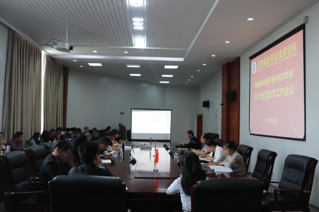 会议首先学习了《国家职业教育改革实施方案》《中共云南省委教育工委 云南省教育厅关于印发 2021 年工作要点的通知》《学院 2021 年教学工作要点》等文件精神,对双高专业群建设方案申报及撰写进行了解读,对教师教学能力比赛标准进行了解读。会议通报了学院 2021 年春季学期 3 月份教学运行情况,研讨交流了学院教学质量提升工作实施方案。