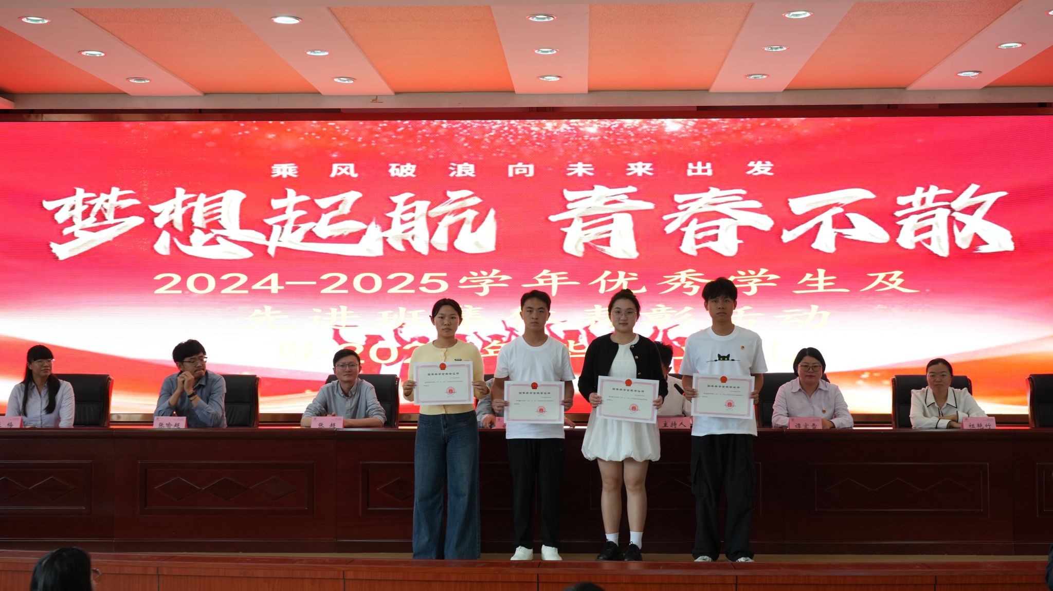 典礼上,学生工作处处长钟忠宣读了2023-2024学年国家奖学金、省政府奖学金获奖名单。教务科研处副处长谭宏雪宣读了本学年省级“五好学生”、“优秀学生干部”、“先进班集体”及省级优秀毕业生名单。主席台领导分别为上述荣誉的获奖代表颁发了证书。